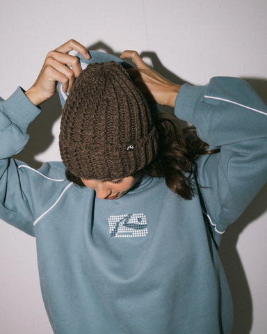Chunky Single Layer Beanie With Cuff And Rusty Label. Wool / Alpaca Blend