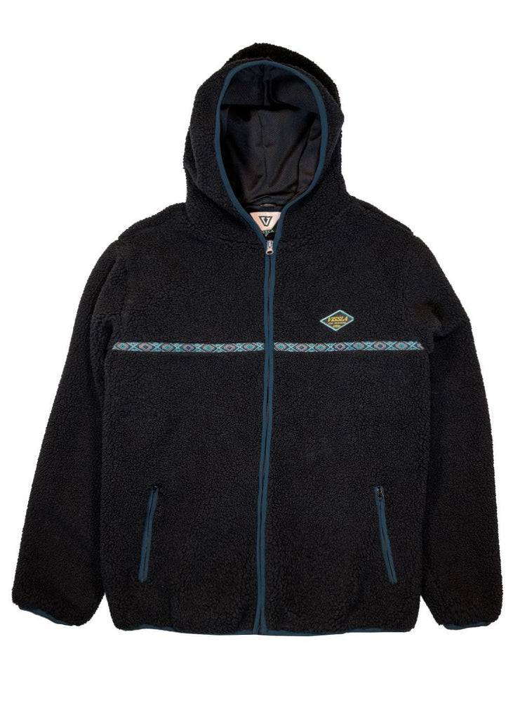 Heavy weight bonded recyled polyster Sherpa and polar Fleece fabric. Front full zip opening.Lycra Binding at writs hem and collar. 2 hands pockets. A Vissla woven patch as an identificaton on the front chest.