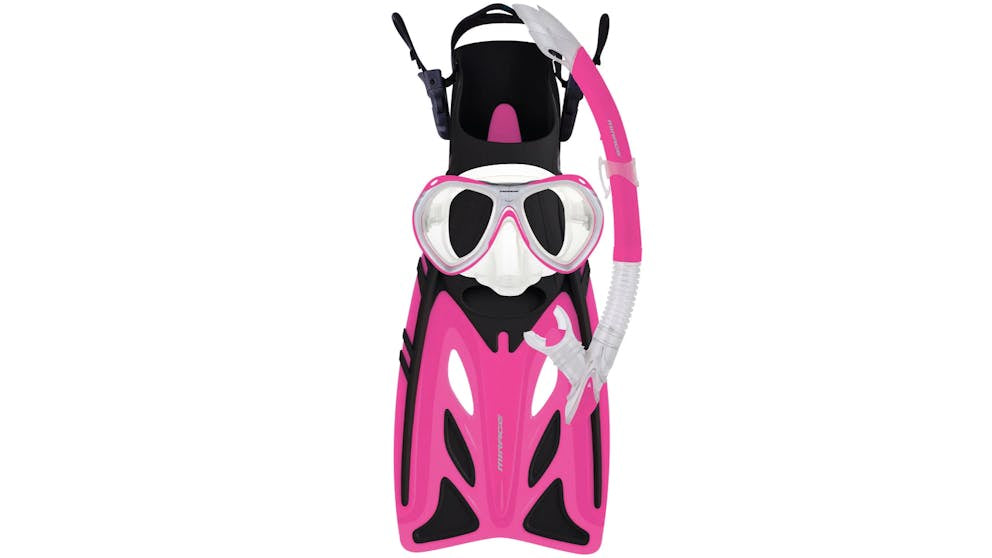Dive into comfort and clarity with the Mirage Crystal Junior Large/X-Large Snorkel Mask and Fin Set with Tempered Glass Lens, featuring a soft silicone skirt for a secure fit and tempered glass lens for crystal-clear underwater views. Perfect for your next ocean adventure.