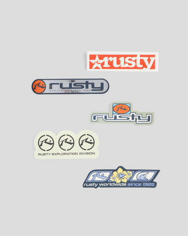 Sticker Pack Including Five Rusty Stickers. Stock Pvc