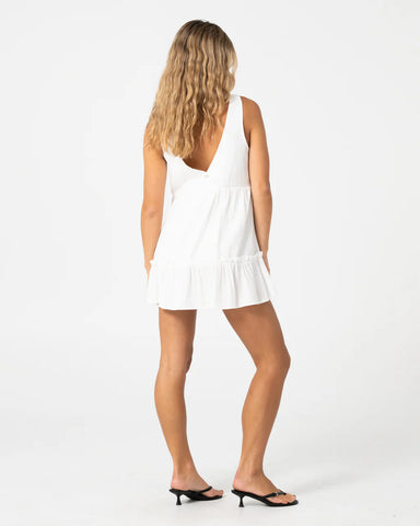 Mini Loose Fitting Low Front V Neck Dress. 30% Linen - 70% Viscose