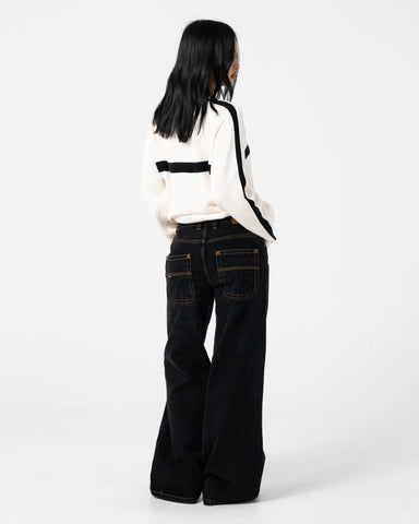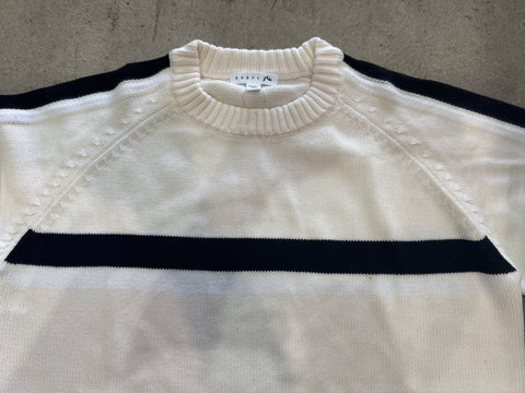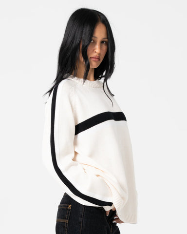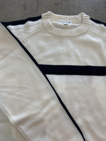 Over Sized Crew Neck Knit With Contrast Stripe Feature. 55% Acrylic / 45% Cotton Yarn