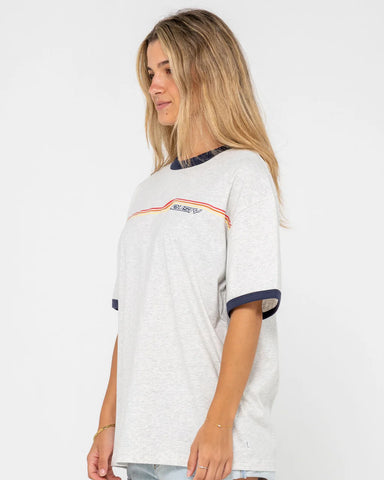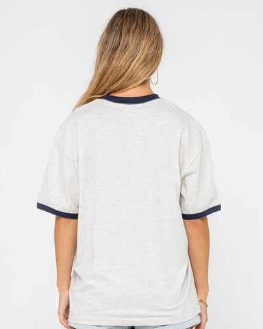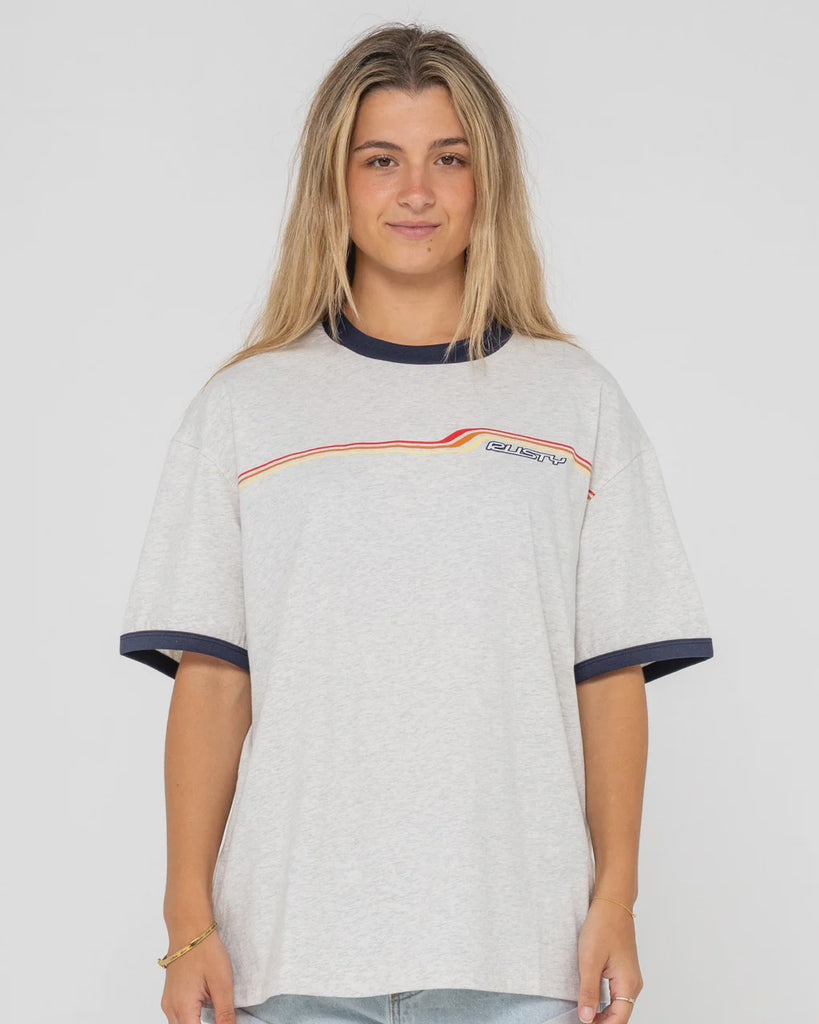 Short Sleeve Oversized Tee With Front Graphic And Contrast Binding. 100% Cotton Midweight Jersey
