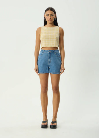 Our newest Lemon Check comes to life in a range of fresh silhouettes, crafted from our signature seersucker blend. Lightweight, textured, and effortlessly breathable, each piece pairs the playful charm of Lemon Check. Designed with a wide boatneck, sleeveless cut, and cropped silhouette, it’s finished with delicate baby lock edges for a clean, effortless look.