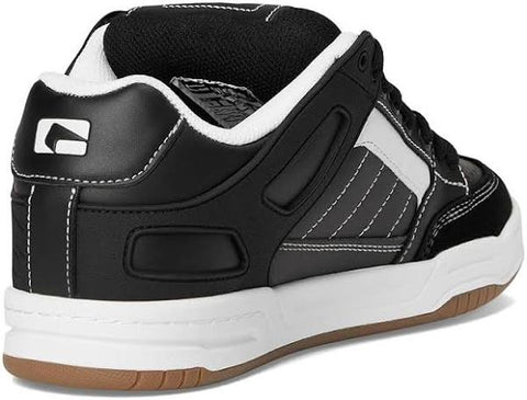 The Tilt in Black/ White/ Stitch Globe’s classic heritage skate silhouette featuring a moulded TPR outside collar for support and durability, and S-Trac™ sole pattern for enhanced grip and board feel.