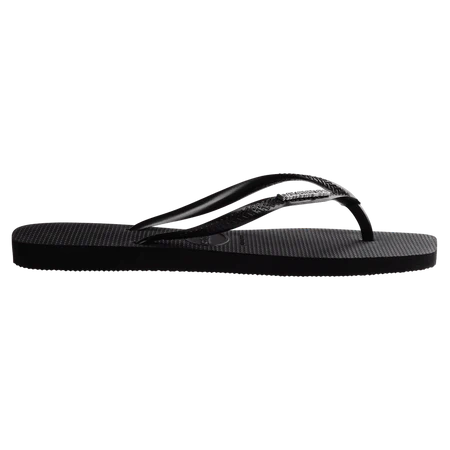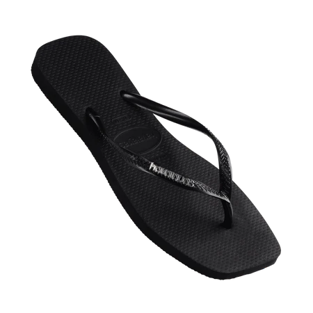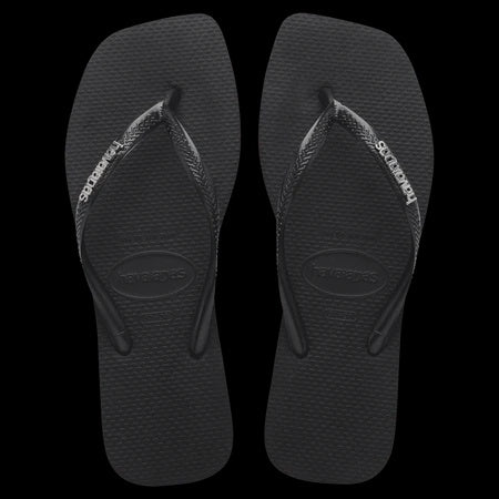 Step out in style with the sleek and modern Havaianas Slim Square Metal Logo Thongs in black/silver. Perfect for adding a touch of sophistication to any summer outfit.