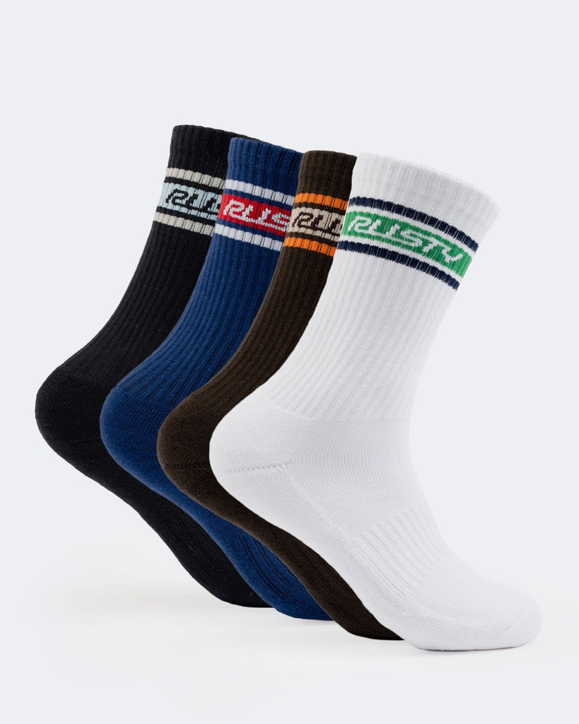 Mid Calf Sock With Stripes And Rusty Logo Jacquard. Ankle / Quarter Sock Yarn 75% Cotton / 20% Polyester / 5% Elastane