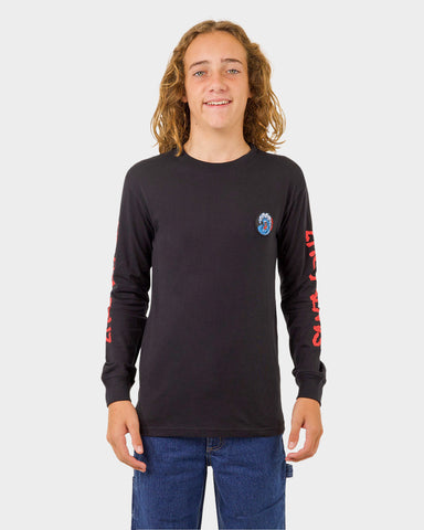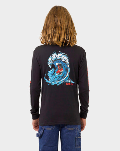 Boys regular fit long sleeve Santa Cruz T-Shirt featuring screen print of the Screaming Wave on front, back and sleeves.