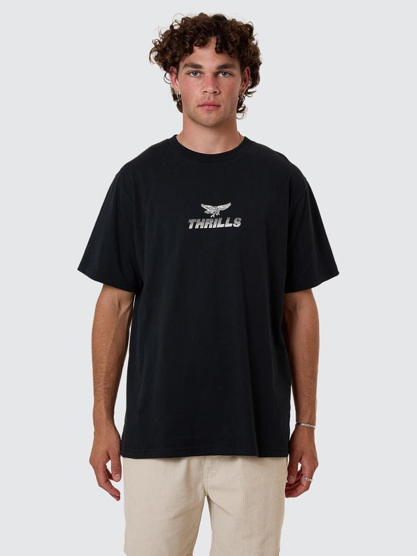 Embrace the calm and chaos in our Paradise Before Anarchy Merch Fit Tee in Black, a classic black oversized tee you can't go wrong with. Keeping things raw with centre chest text and a subtle nod to chaos, this vintage graphic tee is crafted from midweight organic cotton t-shirt with a dry hand feel that feels breathable and comfy from day to night. The tonal graphic leans into minimalist rebellion, perfect for styling with men's baggy pants or denim shorts.